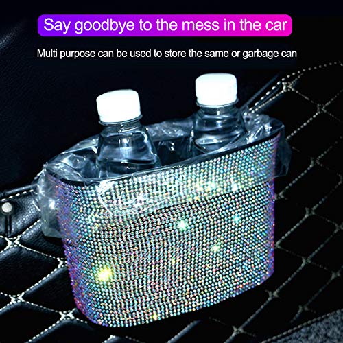 Pattumiera per Auto,MoreChioce Contenitore per Portatile in Plastica con Strass Glitterati Multifunzionale Bidone della Spazzatura Universale Auto Appesa Cestino Multiuso