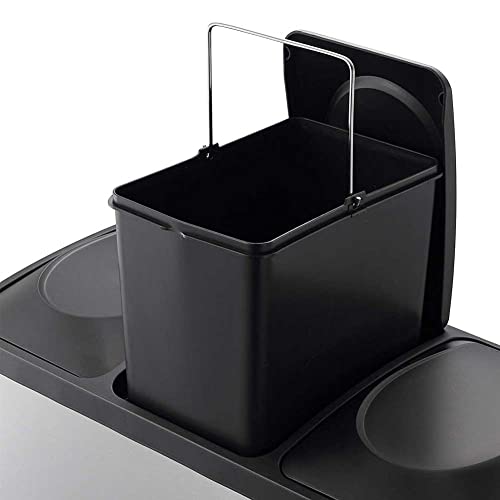Pattumiera Per La Raccolta Differenziata 54 LT In Acciaio Inox e Plastica Con 3 Scomparti da 18 LT Bidone Spazzatura Con Pedale Da Interno o Esterno