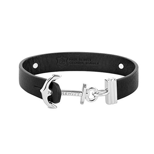 Paul Hewitt Bracciale Uomo Signum Coordinate - Bracciale Uomo Ancora (Nero) Bracciale Uomo Acciaio con Ciondolo a Forma di Ancora (Acciaio)