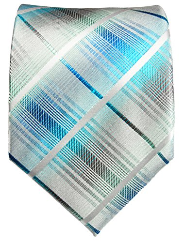 Paul Malone Cravatta di seta + fazzoletto a strisce grigio turchese