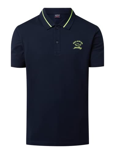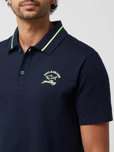 PAUL & SHARK 22411205-013 Contrast Fluo Polo SS Blu Navy Uomo Regular Fit 100% Cotone (M)