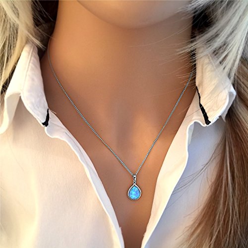 Paul Wright - Ciondolo in argento Sterling 925, 10 x 8 mm, forma a goccia, 41 cm e 5 cm di estensione, Argento sterling Argento, Opale coltivato