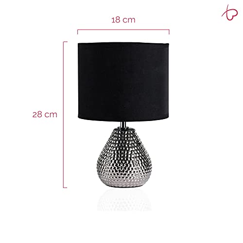 Pauleen 48018 Tavolo Sip of Silver Max. 20W E14 Lampada da Comodino Argento Nero 230V Ceramica/Tessuto Senza Lampadina
