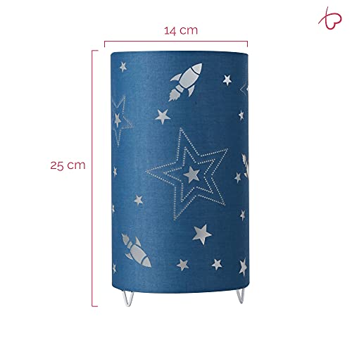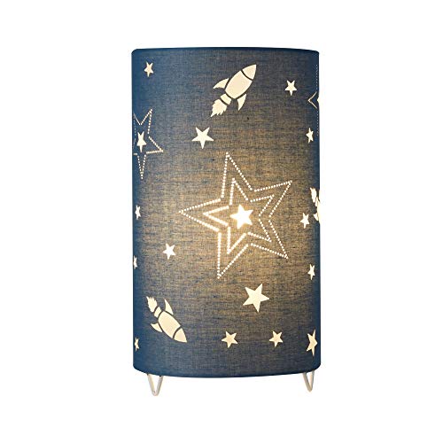 Pauleen Cute Universe Tischleuchte 48035 Lamp Tavolo Max. 20W E14 Lampada cameretta Stelle Missile Blu 230V Metallo/Tessuto Senza Lampadina