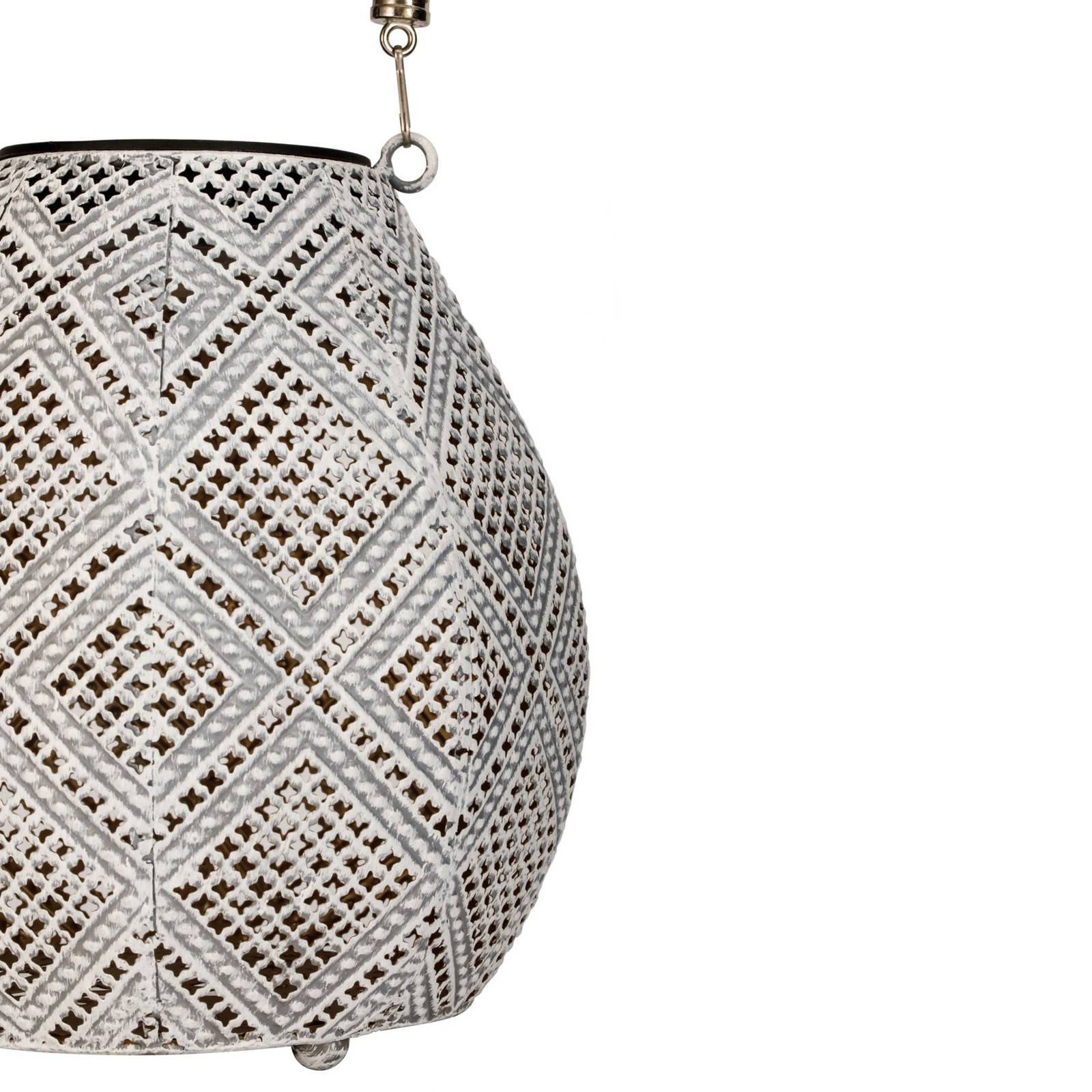 Lanterna solare Sunshine Diamond LED con accensione automaticaLa lanterna solare Sunshine Diamond, con la sua superficie bianca vintage e il rivestimento interno dorato, incanta con romantici effetti di luce. Senza complessi assemblaggi, la lampada può essere semplicemente appoggiata su un tavolo o appesa alla corda di iuta decorativa. Il modulo viene caricato dall'energia solare. La luce dura fino a 8 ore al giorno.