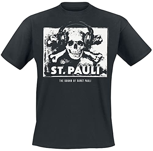 FC St. Pauli - Maglietta da uomo con teschio e cuffie, colore: nero/bianco, Uomo, Nero, XXL