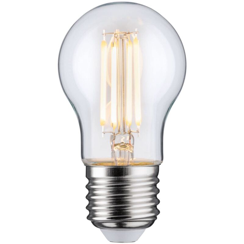 La lampadina a goccia a filamento con una potenza di 6,5 watt emana la sua luce bianco caldo in tutte le direzioni. Le lampadine a goccia hanno una forma compatta che le rende perfette per gli apparecchi di piccole dimensioni. La lampadina è compatibile con tutti i portalampade e27 disponibili in commercio.