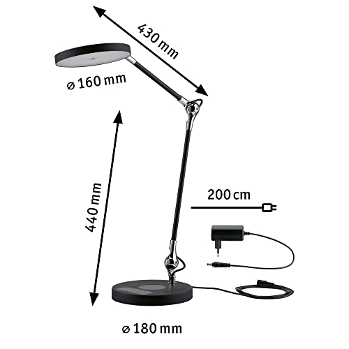 Paulmann 78910 Lampada da scrivania LED Numis TunableWhite Qi funzione di carica incl. 1 lampada per ufficio da 11 Watt dimmerabile nero luce di lavoro, bianco caldo a bianco naturale 2.700 - 6.500 K