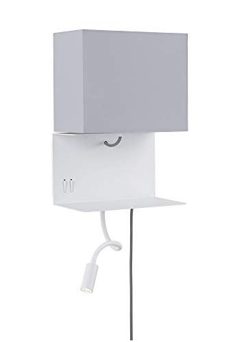 Paulmann 78913 Applique LED Merani con portaoggetti incl. 1 Lettura 2,5W Lampada da Parete 3000K E27 2.5 W, Grigio, Bianco