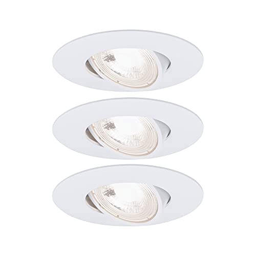 Paulmann 93388, Set LED, orientabili, Caldo, Rotondi, incl. Faretto da Incasso 3 x 6 Watt, Bianco Opaco, in plastica, 3000 K, 3 unità