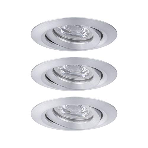 Paulmann 94297 Nova Mini Plus Lampada LED Coin Rotonda orientabile incl. 3 faretti da Incasso da 4W dimmerabile Bianco Caldo 2700K 12 W, Alluminio tornito, 3er (Alu gedreht)