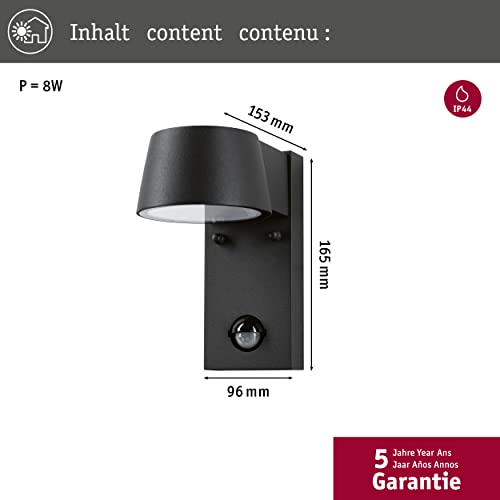 Paulmann 94453 Lampada per esterni LED Capea con rilevatore di movimento IP44 bianco caldo incl. 1x6 Watt nero alluminio 3000 K