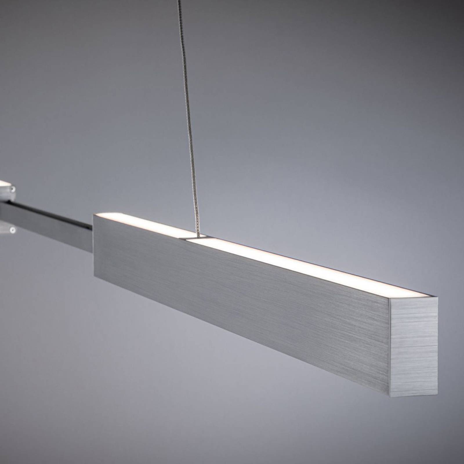 Innovativo apparecchio a sospensione a LED controllabile Aptare, regolabile in altezza e lunghezza Questo apparecchio a sospensione a LED Aptare è dotato di alcune funzioni pratiche e comode che lo rendono soprattutto molto flessibile e permettono di adattarlo alle condizioni spaziali e alle esigenze personali. Oltre alla regolazione in altezza da 90 cm a 150 cm, può essere regolata anche in orizzontale. Ciò significa che il corpo dell'apparecchio può essere esteso da 132 cm di lunghezza fino a 180 cm. Questo crea una separazione ottica della fonte di luce. Il fascio di luce viene emesso direttamente verso il basso e indirettamente verso l'alto, rendendolo ideale per l'illuminazione del tavolo da pranzo. Per controllare la lampada a sospensione a LED Aptare, il telecomando ZigBee Gent è incluso nella consegna, che permette il controllo senza un dispositivo mobile. Con l'aiuto della Smart Friends Box e l'applicazione gratuita per Android e iOS, la luce può essere facilmente controllata tramite smartphone o tablet e comunicare con altri componenti. Dati tecnici/compatibilità: - incl. Paulmann ZigBee radiocomando Gent (portata fino a 20 m in campo libero). - In alternativa controllabile con l'app gratuita Smart Friends (iOS o Android) tramite smartphone o tablet tramite la Paulmann Smart Friends Box - compatibile con i seguenti sistemi: Amazon Alexa Echo Plus, Philips Hue Bridge 2 (eccetto: Hue Entertainment), Osram SMART+. - espandibile con altri prodotti Smart Friends di diversi produttori - compatibile con ZigBee 3.0