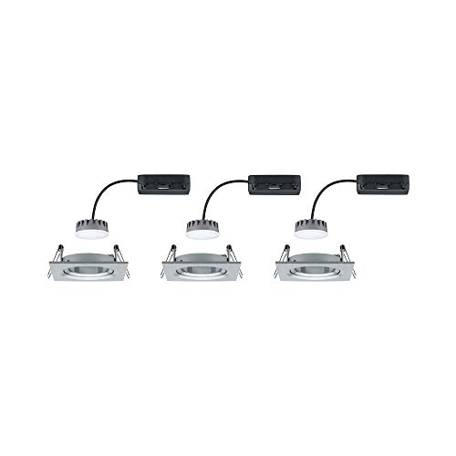Paulmann Coin 93680 Nova Plus-Set di 3 faretti da incasso a LED, rettangolari, orientabili, 3 x 6,8 W, dimmerabili, in alluminio, 2700 K, 3 pezzi