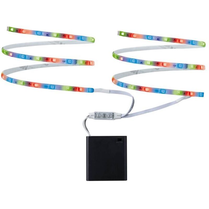 Dettagli tecnici Caratteristiche striscia LED flessibile, autoadesiva Collegamento (striscia LED) con porta batterie Colore Bianco Colore luce RGB Dimensione del prodotto, lunghezza 800 mm Flusso luminoso per fonte di luce (lumen) 28 lm Materiale Metallo, Plastica Peso 90 g Potenza 2.4 W Tensione di funzionamento 6 V Tipo prodotto Kit completo striscia LED Utilizzo (illuminazione) interno LED Mobil Stripe RGB 2x80cm 1,2W alimentato a batteria Le strisce mobili a LED portano la luce decorativa ad effetto nell'angolo più scuro, anche se non c'è una presa di corrente nelle vicinanze. Il piccolo vano batterie è dotato di quattro batterie AA o batterie ricaricabili. Grazie al retro autoadesivo, le strisce flessibili possono essere fissate in modo rapido e semplice a pareti, mobili o oggetti mobili. I diversi colori e effetti luminosi possono essere selezionati tramite una piccola unità di controllo, che si trova tra la striscia e il vano batteria. Testo tradotto automaticamente Punti di