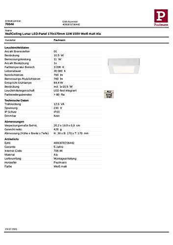 Paulmann 706,44 lampada da soffitto, integrato, Bianco