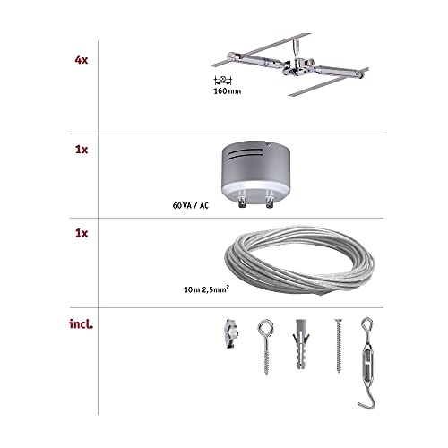 Paulmann sistema di cavi per faretti, set estensibile, 94146, Togo, massimo 4 pezzi da 10 W l'uno, cromato, lampada da soffitto, senza lampadina