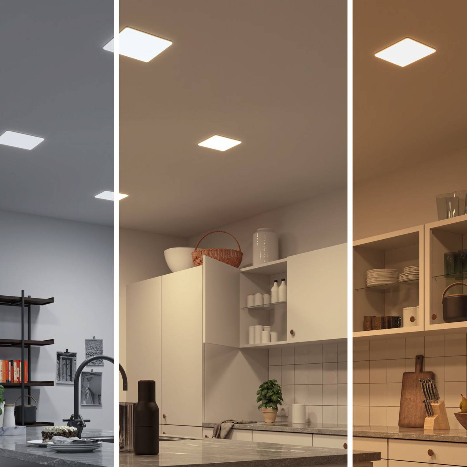 Illuminazione della casa intelligente con il pannello da incasso quadrato Veluna con tecnologia ZigBee Il pannello di installazione a LED senza bordi è compatibile con ZigBee e offre quindi la possibilità di collegamento ad un sistema di controllo basato sul sistema ZigBee 3.0. Per il controllo è necessaria la Smart Friends Box che include l'applicazione Smart Friends App su un dispositivo terminale o il telecomando ZigBee. Il pannello di installazione Veluna offre diversi colori di luce, ad esempio per sostenere il bioritmo naturale: attivabile al mattino (bianco luce diurna), utile durante il giorno (bianco universale), rilassante la sera (bianco caldo). Ci sono molte possibilità di utilizzo dell'apparecchio da incasso Veluna: Può essere utilizzato non solo nei salotti e negli uffici, come apparecchio a soffitto o a parete, ma anche in ambienti umidi grazie alla protezione integrata contro gli spruzzi d'acqua. - adatto a diversi diametri di installazione grazie alle clip a molla scorrevole sul retro Dati tecnici / compatibilità: - controllabile a scelta con Smart Friends App gratuita (iOS o Android) tramite smartphone o tablet tramite la Paulmann Smart Friends Box o con il telecomando Paulmann ZigBee (vedi accessori) - compatibile con i seguenti sistemi: Amazon Alexa Echo Plus, Philips Hue Bridge 2 (eccetto: Hue Entertainment), Osram SMART+ - espandibile con altri prodotti Smart Friends di diversi produttori - compatibile con ZigBee 3.0