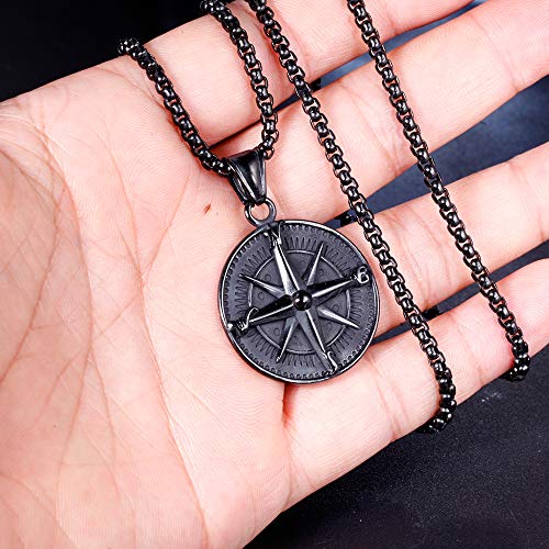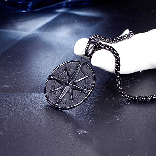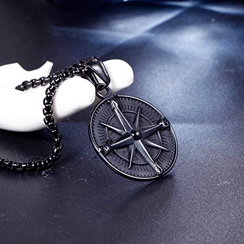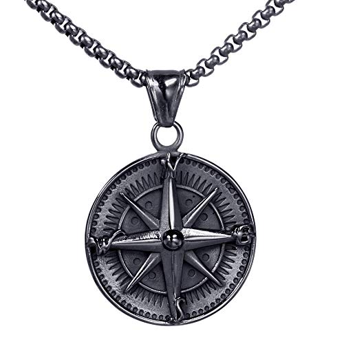 PAURO Anello Uomo Acciaio Inossidabile Vintage Tondo Bussola Pendente Punk Collana Nero con Catena