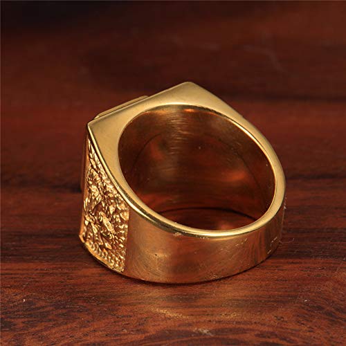 PAURO Anello da Uomo Annata in Acciaio Inossidabile Dorato con Quadrante Dorato Drago Prepotente in Stile Cinese con Grande Pietra Blu Taglia 14