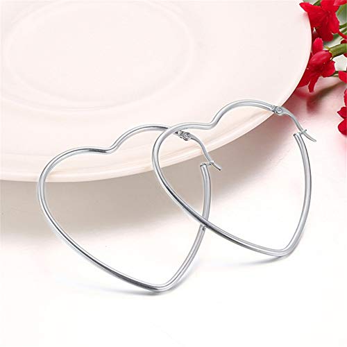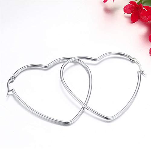 PAURO Donna in Acciaio inossidabile Titanio Grande Orecchino Cuore Amore Disegno Semplice 60mm Argento