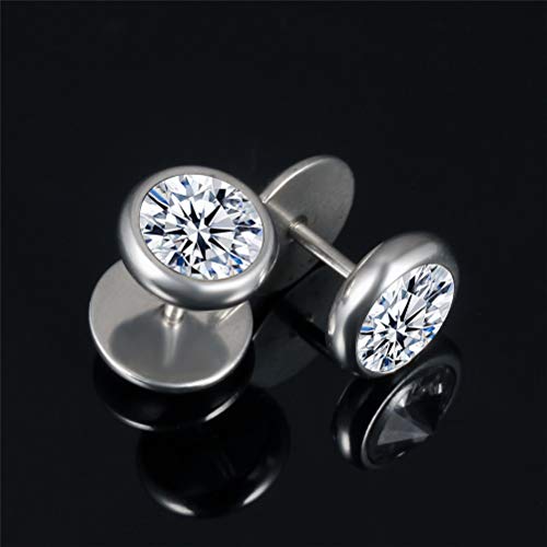PAURO Unisex Acciaio inossidabile tondo argento zircone borchie orecchini Tragus ipoallergenico
