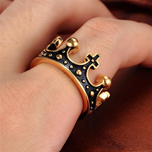 PAURO Uomo Acciaio Inossidabile Epoca Imperiale Corona Anello In Oro Con Disegno A Croce Taglia 22
