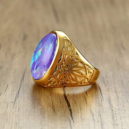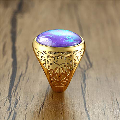 PAURO Uomo Gioielli in Acciaio Inossidabile Anello Ovale in Pietra Preziosa con Motivo a Cielo Stellato Anello Stile Vintage Viola Misura 14