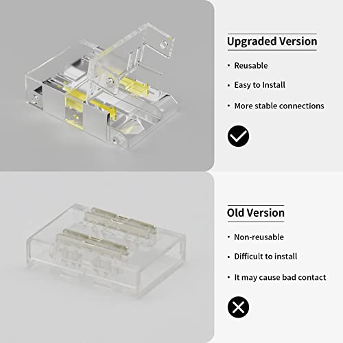 【Connettori estensibili senza saldatura】 Questo kit di estensione per striscia led a pannocchia ti consente di estendere la lunghezza della striscia luminosa all'alimentatore o alla spina, eliminando il problema di spazio limitato. Con questo accessorio è possibile estendere e collegare le strisce luminose, estendere il collegamento tra le strisce luminose e il controller/alimentatore e creare una connessione ad angolo
