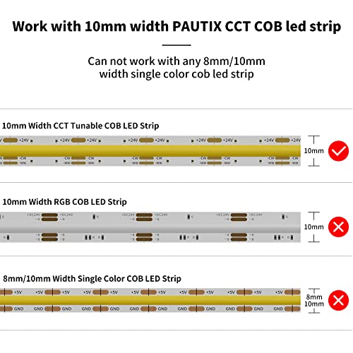 【Luci compatibili】 Questo kit di accessori per l'installazione è compatibile SOLO con le strisce LED COB sintonizzabili Pautix CCT con larghezza 10 mm (non applicabile per larghezza scheda 8 mm). Il connettore centrale trasparente non blocca la luce.