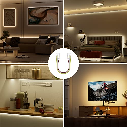 PAUTIX 4pin CCT COB LED Striscia Connettore Kit, larga 10mm Striscia LED COB CCT, Connettore trasparente Gapless 4 pezzi e cavi di prolunga a doppia estremità 4 pezzi da 10cm