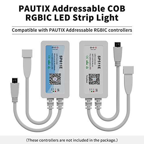 INDIRIZZABILE: PAUTIX COB RGBIC LED Strip Light con Smart IC è indirizzabile. Utilizzando un controller LED indirizzabile, è possibile regolare il colore, la modalità e la velocità della barra luminosa in base ai pixel della barra luminosa. (Il controller e l'alimentatore non sono inclusi nella confezione, puoi cercare "B0BNDV5JWK" e "B0BP7H8GZ8" per trovarli)