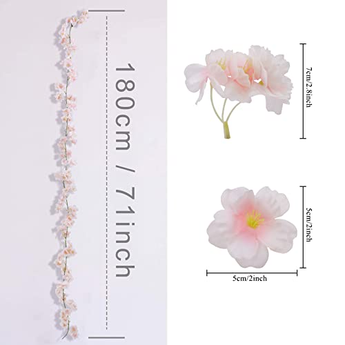 Pauwer 3 x 180cm Fiori di Ciliegio in Rattan Artificiale Ghirlanda Corona Fresh Lovely di Finto Fiore Pianta Fiore Foglia di Vite per Recinto Giardino Casa Festa di Natale Nozze Decorazione