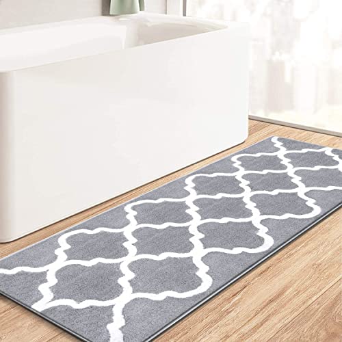 【Design eccellente】: tappeto da bagno lungo 60 x 150 cm, con motivo geometrico bianco e grigio, aggiunge un tocco visivo unico a qualsiasi arredamento del bagno.