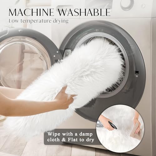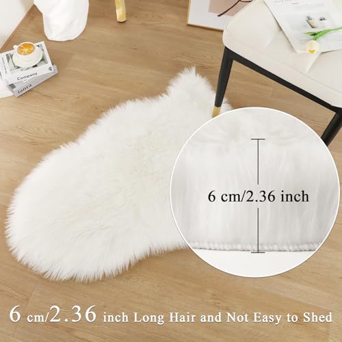 Pauwer Tappeto in finta pelliccia di pecora, effetto pelliccia d'agnello, effetto pelliccia, effetto pelliccia, per divano (bianco, 60 x 120 cm)