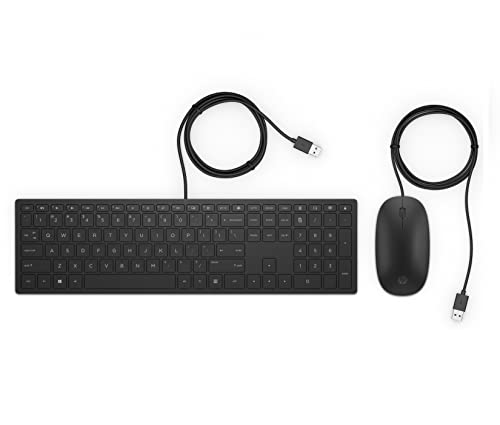 HP - PC Pavilion Tastiera e Mouse 400 con Cavo USB, Design Sottile e Accattivante, QWERTY, Lingue Quechuan, Nero
