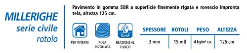 Pavimento in Gomma millerighe h cm 125 pessore mm 3 Colore Nero Vendita a Metro lineare