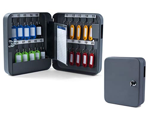 PAVO - Cassetta portachiavi per 20 chiavi, con ciondolo e fessura laterale, colore: Grigio