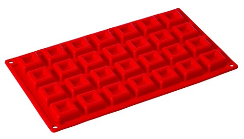 Pavonidea FR075RSAS Stampo in Silicone Multiporzione Fingerfood Savarin Quadrato 28 Impronte, Rosso