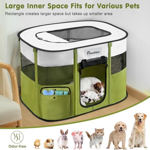 Pawaboo Gabbie per Animali Pieghevole, Recinto per Animali Domestici in Telo Oxford Impermeabile con Rete, Tenda da Gioco per Gatti Cani Cuccioli Portatile per Interno o Esterno, Verde Avocado M