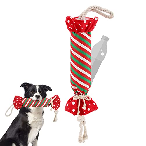 Pawaboo Giocattolo di Natale per Cani, Gioco di Peluche con Corda Squittio, Giochi Interattivi per Cuccioli con Bottiglia d'Acqua, A Forma di Caramella Senza Ripieno da Masticare e Dentizione
