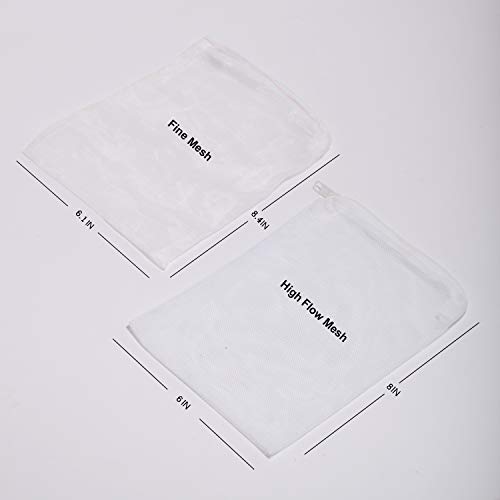 La confezione contiene: 5 sacchetti filtranti a rete fine + 5 sacchetti filtro a rete ad alta portata. Dimensioni: borsa a rete fine 16,3 x 20,6 cm, borsa a rete ad alto flusso 6 x 20,3 cm.