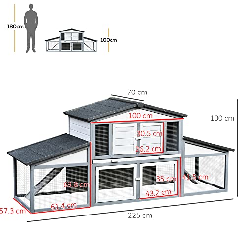 PawHut Conigliera da Esterno in Legno Gabbia per 2-3 Conigli o Roditori Bianca