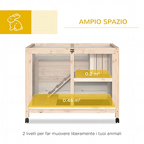 PawHut Conigliera in Legno a 2 Livelli con Casetta per Conigli e Porcellini d'India, Gabbia con Rampa e Vassoio Estraibile, 91.5x53.3x73cm Color Legno