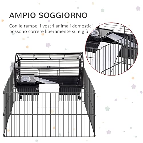 PawHut Gabbia per Conigli, Ricci, Porcellini d'India e Roditori, Conigliera per Interni in Metallo Nero, 88x128.5x56cm