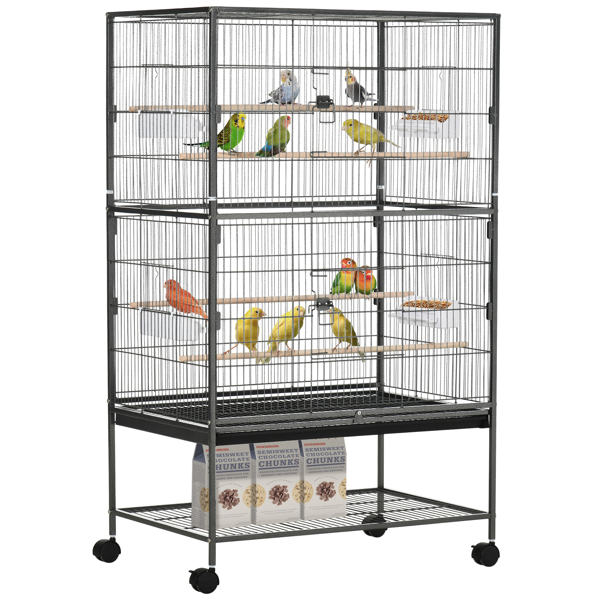 Mantieni il tuo pennuto al sicuro e felice con questa gabbia per uccelli da interno con supporto PawHut. La nostra gabbia offre molto spazio vitale e spazio per l'attività. Questa grande gabbia con ruote include 4 posatoi e 4 contenitori per il cibo per far divertire i tuoi uccelli. Sarai in grado di accedere facilmente al cibo, all'acqua e all'area interna del tuo uccello con più porte. Il vassoio estraibile anteriore sul fondo è progettato per raccogliere i semi degli uccelli.