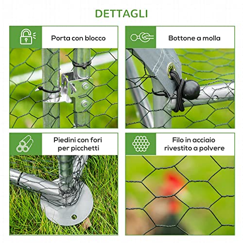 PawHut Recinto per Galline con Telo Impermeabile in Tessuto Oxford, Gabbia per Polli e Conigli in Acciaio Galvanizzato 2x1.05x1.72m, Argento