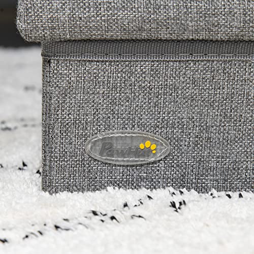 PawHut Scala per Cani e Gatti max 5kg a 3 Gradini con Spazio Interno, in Tessuto Effetto Lino e MDF, 63.5x42.5x40.5 cm, Grigio Chiaro