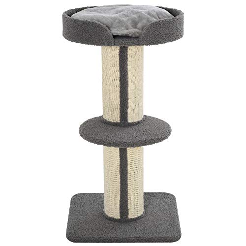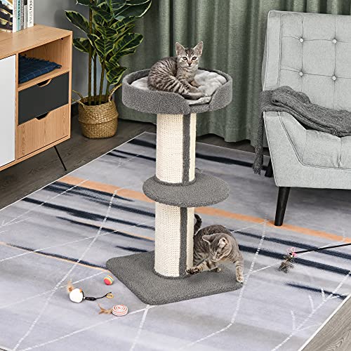 PawHut Tiragraffi ad Albero per Gatti con Cuccia, Cuscino e Morbido Rivestimento Grigio, Pali in Corda Sisal, 45x45x81cm