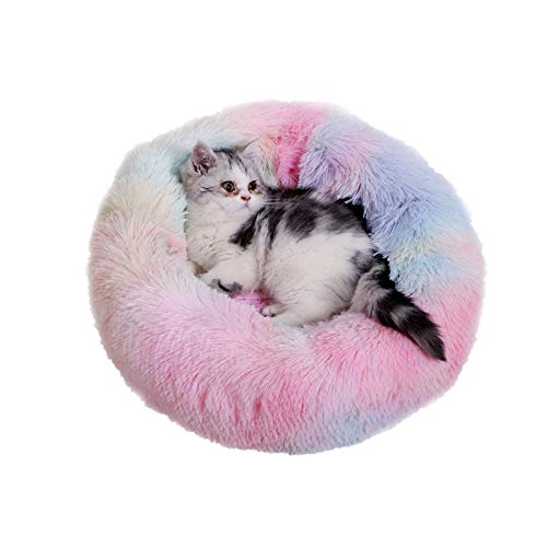 Pawstrip - Cuccia per cani in peluche, rotonda, lavabile, con ciambella, riscaldante, calmante, per cani e gatti